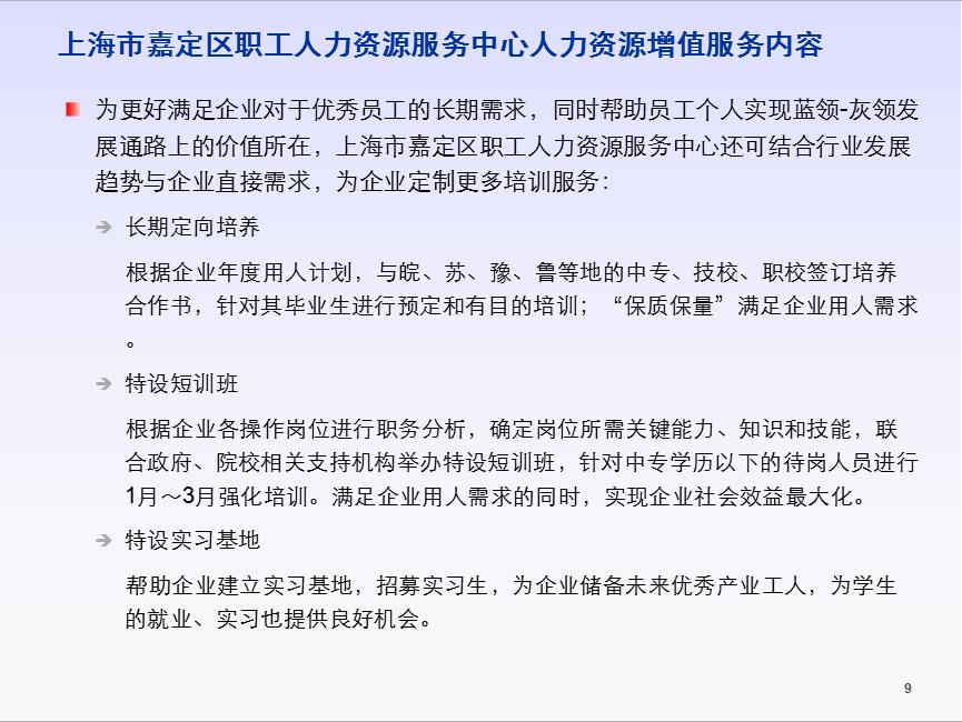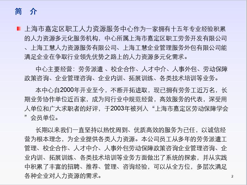 上海市嘉定區職工人力資源中心服務項目說明書-上海工慧企業管理
