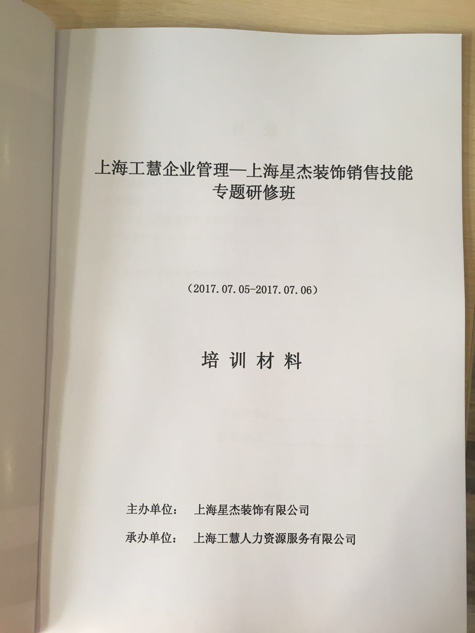 上海星杰裝飾有限公司于2017年7月5日 7月6日組織了100名華東銷售精英來上海星杰總部2天企業內訓,由上海工慧企業管理服務外包有限公司承辦。