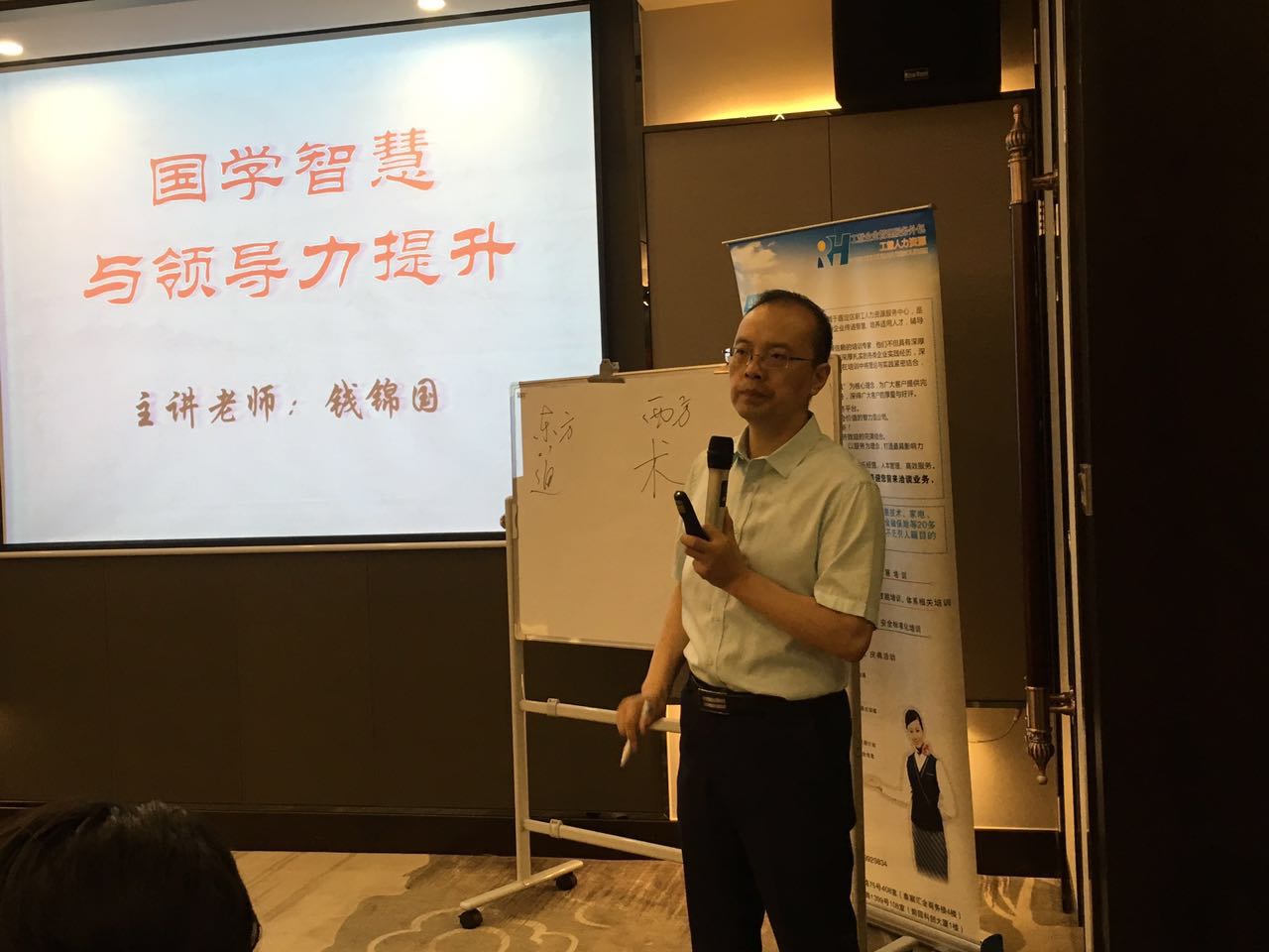 當日,錢錦國教授帶領我們學習了西方式管理模式與東方式領導模式的本質區別,指明西方的管理方法看重“分”,東方的領導之道看重“合”;西方的管理是“術”,東方的領導是”道“!并分析了當前的組織犯了兩大錯誤:一是將管理與領導混為一談,二是管理過度,領導不足。錢教授說:“西方的管理著重解決秩序知效率的問題,東方的領導著重解決人心和方向的問題。要想解決人心和方向的問題,非用道不可。國學智慧揭示出領導力的核心是道德領導力,領導力首先是領導好自己的能力,領導之道在明明德。關于如何提升領導者的德行,儒家指明了一條修齊治平的道路。錢教授并由此總結出“時時明明德,事事致良知”的十字箴言!從而使學員真正體會到國學智慧中關于領導力修煉的思想精髓與價值。