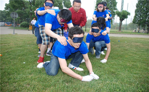 3除了蛇尾最后一名隊友外,其它隊友都須戴上眼罩,除了第一個隊友可以說話以外,其它隊友不可以講話;再強調一下:第一名隊友看不見,但能說話,最后一名隊名,看得見,但不能說話;從第二名隊友開始到倒數(shù)第二名隊(教練做個示范,指定一下)是既看不見,又不能說話。這是一個君子游戲,如果發(fā)現(xiàn)有說話的、偷看的、每發(fā)現(xiàn)一次我們將扣除總積分的…**分;