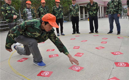 在一個圓圈內有35個數字牌,以組為單位,當項目開始后所有隊員進入項目區域,按照1至35的依次順序排數字牌,以操作時間最短的一組為獲勝