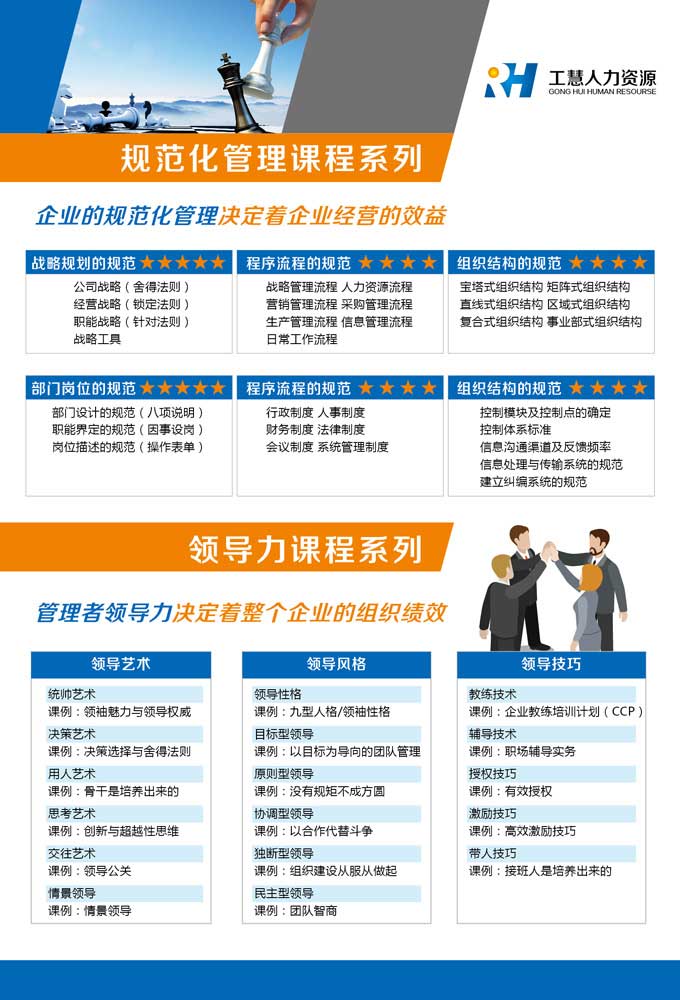 你當前所在的位置:首頁 > 企業管理培訓 > 企業內訓 > 培訓課程五大系列-上海工慧企業管理